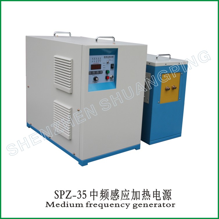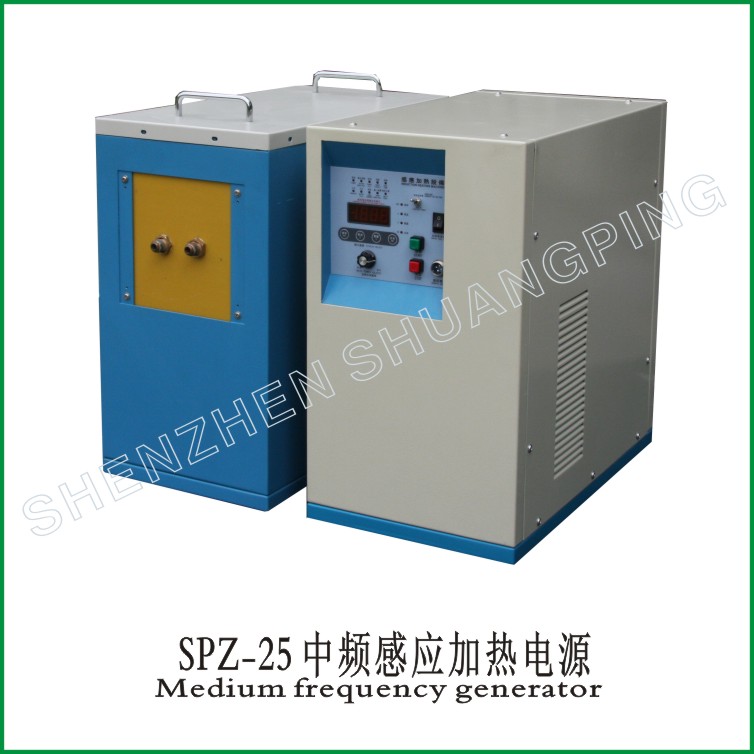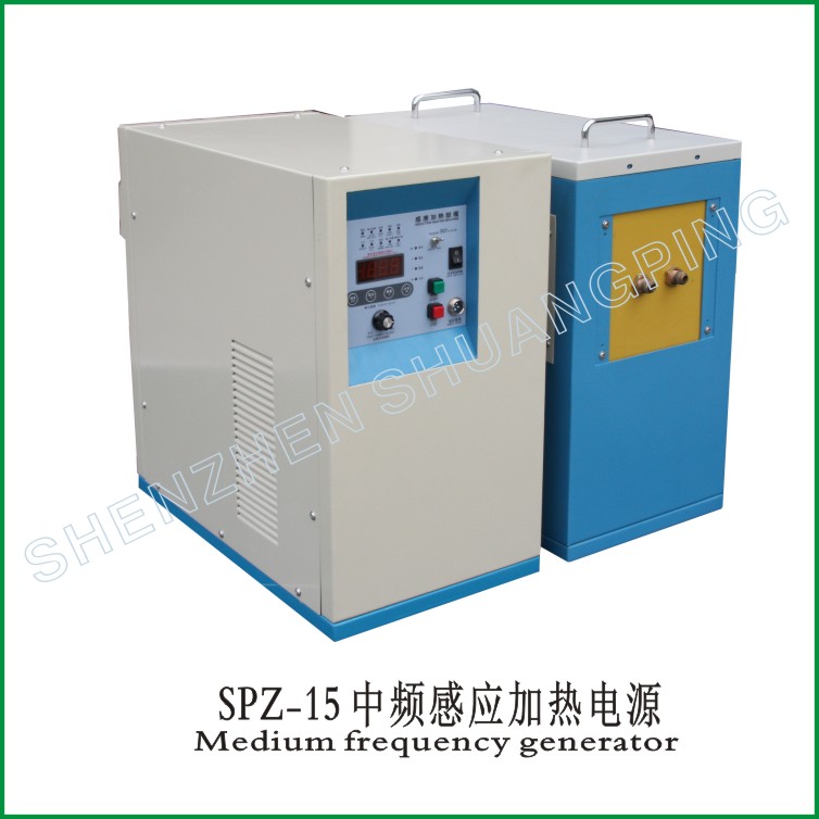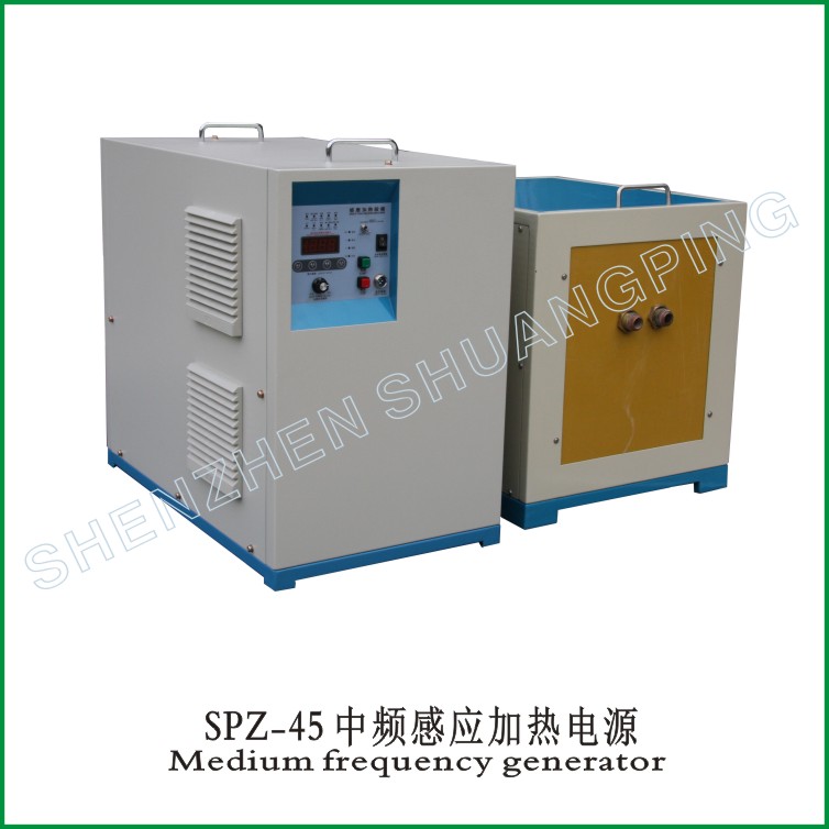 In SPZ medium frequency machines,parallel oscillating structure is used . IGBT module power components and our fourth generation inverting control technologies are applied to ensure high quality and reliability. Fully protection is adopted such as over current protection, water fail protection, over temperature protection, over voltage protection, short circuit protection and phase fail protection.  When working, output current, output voltage , oscillating frequency and output power are all displayed on the operating panel to help in the design of the coil and adjust of the machine.