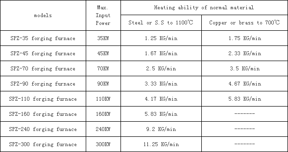 The furnace includes basically the SPZ medium frequency generator, the compensating cap, the working table, the heating coil, coil cover, rod feeder and so on. For some applications, the infrared sensor, temperature controller and automatic rod feeding systems can also be included.