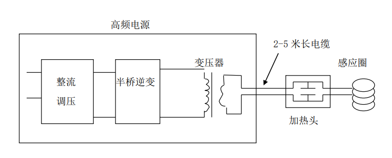 SPGP500K-05B設備采用串并聯諧振電路,諧振后通過高頻變壓器輸出高頻電源到加熱頭,然后再將適合加熱的高頻電源輸出到感應圈;。諧振結構如圖: