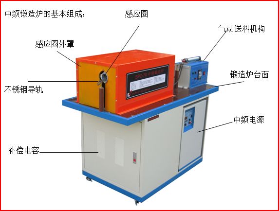 包括中頻電源、補(bǔ)償電容箱及工作臺、感應(yīng)圈、送料機(jī)構(gòu)等。根據(jù)不同的應(yīng)用要求,還可能包括紅外測溫儀,控溫儀及送料、卷料等裝置;
