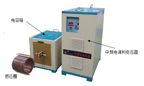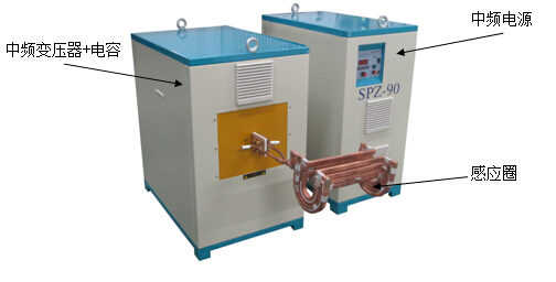 基本組成為:中頻電源 + (中頻變壓器 + 諧振電容) + 感應圈。