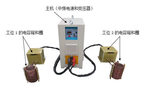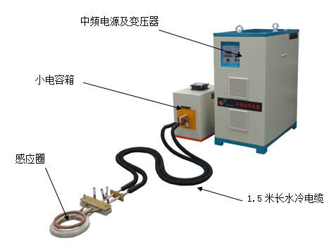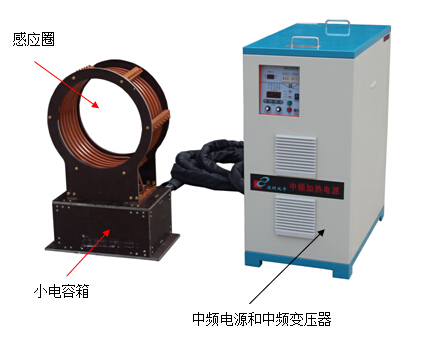 基本組成為:(中頻電源 + 中頻變壓器) + 小電容箱 + 感應圈。